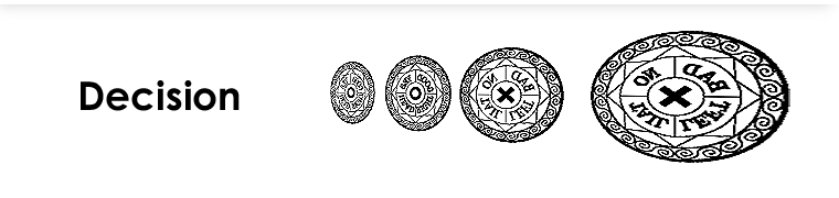 - 5つの円:5つの惑星,中心点と4つの方角。